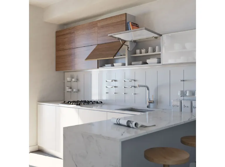 The EvoLift family of systems ensures a perfect opening and closing movement for all flap door applications. EvoLift components combine compact dimensions, to maximise available storage space, with great strength and durability. Highly innovative and designed with elegance and refinement, EvoLift’s modernist, linear profiles are complemented by neatly-designed covers, presented in tasteful colours and finishes that blend perfectly with all furniture styles. EvoLift opening systems cover all applications of single flap doors, folding doors, parallel opening doors and swing opening doors. All versions incorporate a spring mechanism that allows a wide range of adjustment. The adjustability of Evolift means that all variants of door dimensions and weight are covered by only two strengths of the spring mechanism. All EvoLift systems are available with soft close, to ensure a smooth and controlled movement, and with Push self-opening for flap doors. Suitable for use on wood-based and aluminium-framed doors.
